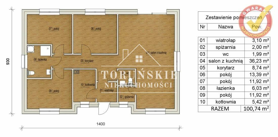 Dom wybudowany z pustaka ceramicznego, więźba dachowa - wiązary prefabrykowane w klasie drewna C24, dach pokryty blachodachówką, okna 3-szybowe ciepły montaż, drzwi zewnętrzne antywłamaniowe.